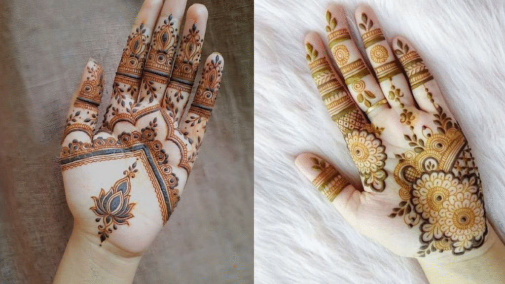 इनमें मिनिमलिस्ट, ज्वेलरी-स्टाइल, और नेगेटिव स्पेस मेहंदीडिज़ाइन बहुत लोकप्रिय हैं।