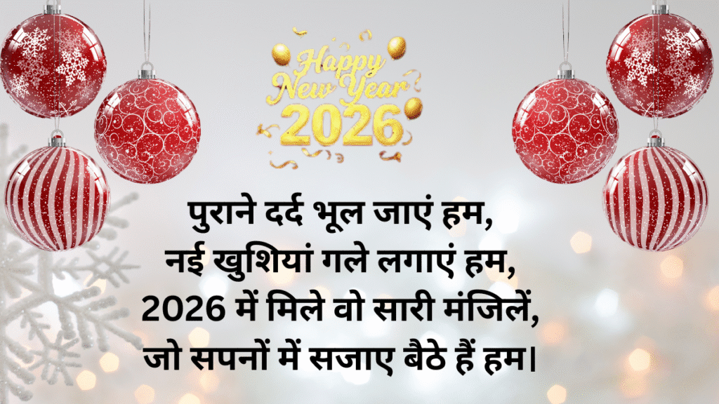 नया साल 2026: नया साल सिर्फ तारीख बदलने का नाम नहीं, बल्कि नई उम्मीदों, नए सपनों और नई शुरुआत का संदेश होता है। साल 2026 में कदम रखते हुए हर दिल चाहता है कि ज़िंदगी में खुशियाँ आएं, रिश्ते और गहरे हों और सपने सच हों। इसी एहसास को बयां करती हैं ये दिलकश और खूबसूरत शायरियाँ।