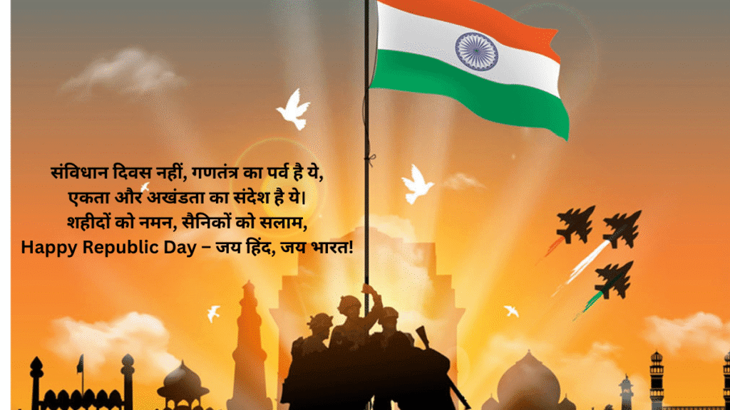 26 जनवरी, भारत का गणतंत्र दिवस – वो दिन जब हमारा संविधान लागू हुआ और हम एक सच्चे गणराज्य बने। इस दिन हम अपने शहीदों को नमन करते हैं, जिन्होंने अपनी जान की बाजी लगाकर हमें आजादी दिलाई। तिरंगे को सलाम करते हैं, जो हमारे गर्व और एकता का प्रतीक है।